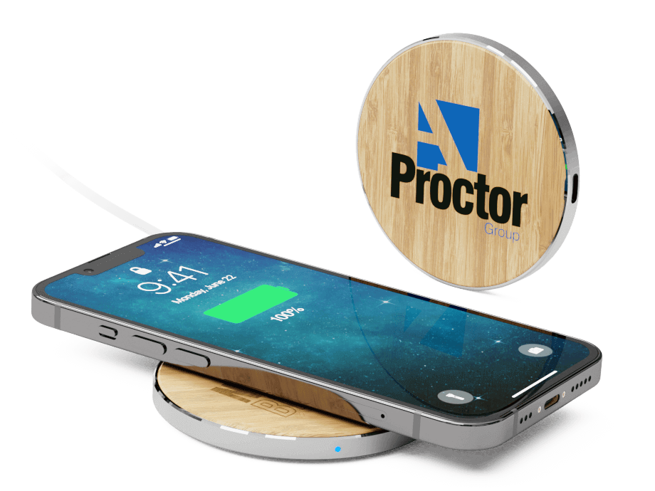 The natural bamboo wood finish creates a striking contrast with vibrant brand imagery, aligning your company with eco-friendly values. Opt for our Individual Naming service to create personalised wireless chargers for onboarding clients or employees. Alternatively, number your units for data gathering for your next trade show or event. The wireless Ring charger is also part of our new merch packs, perfect as gifts for employees and clients!